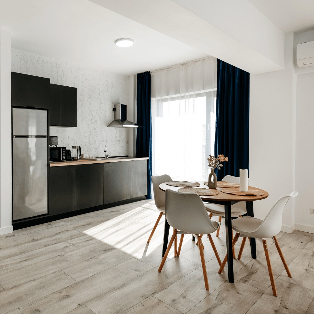 Our apartments feature a carefully curated interior design that combines modern aesthetics with warm, welcoming touches. From elegant lighting and high-quality furniture to thoughtful decor, each space is designed to offer a relaxed and refined living experience – whether you’re staying for a few nights or a few weeks.