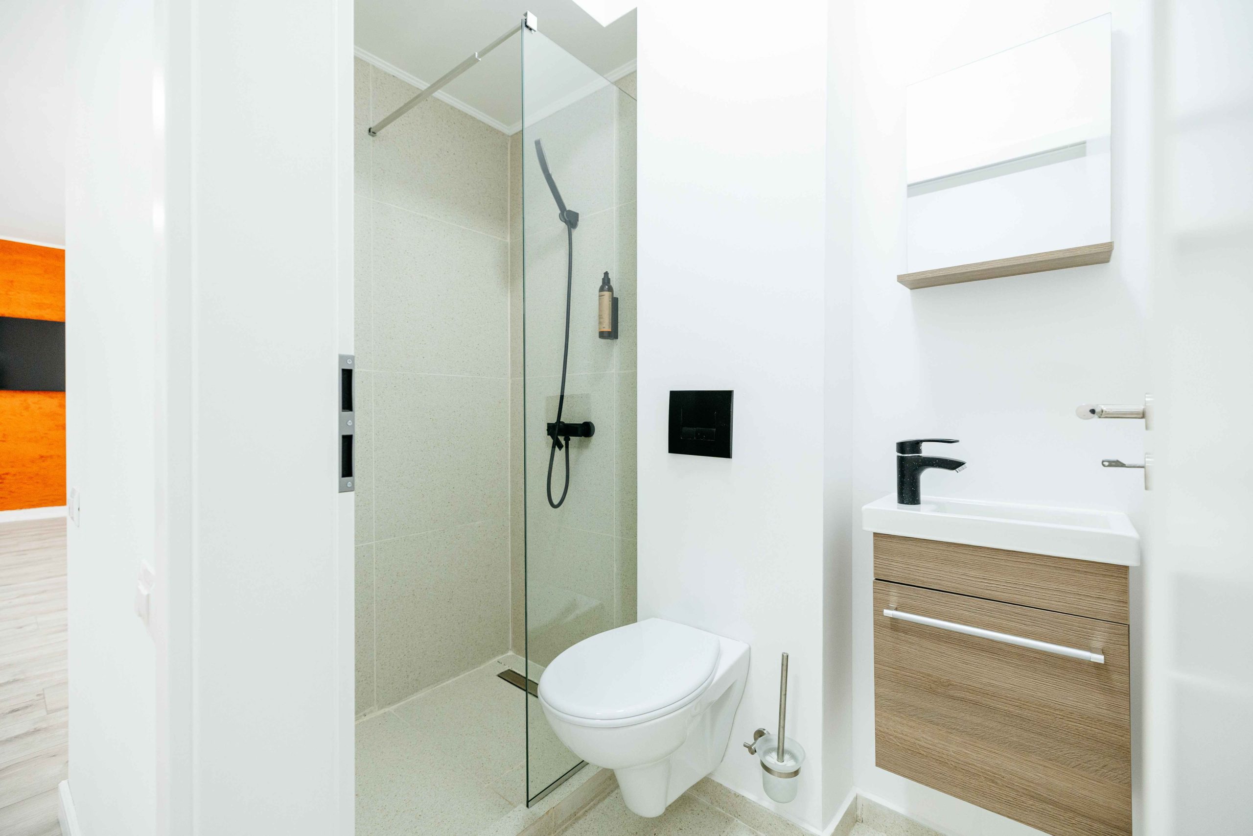Our bathrooms are bright, clean, and thoughtfully designed – offering everything you need for a fresh start each day. Soft towels, premium soaps, and modern lighting make it feel just like home.